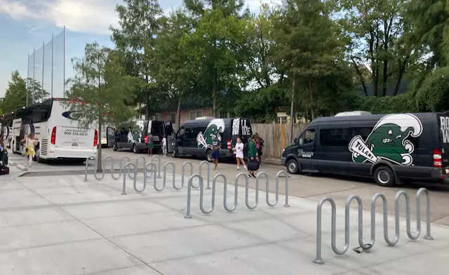 Following the team’s practice, Tulane Athletics staff members returned to campus to retrieve equipment in preparation for the game on Saturday.