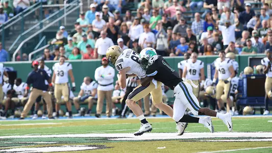 2016: Played in 10 games, starting in each…Finished with 39 tackles (31 solo, 8 assists) and 2.0 tackles for loss of three yards…Tied Parry Nickerson for most pass break-ups on the team with nine…Tied his career best of two pass breakups vs. Navy on Sept. 17…Achieved a career high eight tackles vs. UL Lafayette on Sept. 24, where he picked up his first career interception in which he returned 12 yards as well - Also tied his career high of 2 PBU’s for the second straight week…Picked up his second career interception at Houston on Nov. 12, along with his first career sack…Tied his high tackle amount of eight vs. Temple on Nov. 19…Earned a pass break-up in four straight games to end the season.